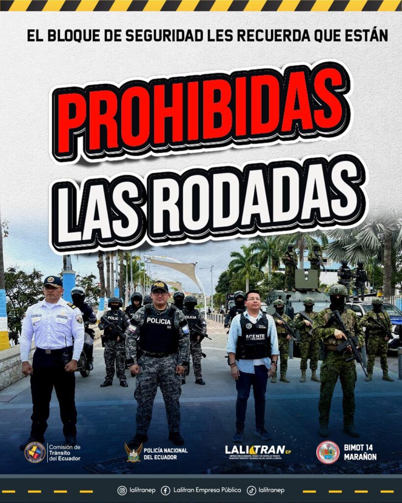El #BloqueDeSeguridad les recuerda a todos que, en el cantón #LaLibertad, están terminantemente prohibido realizar cualquier tipo de Rodadas