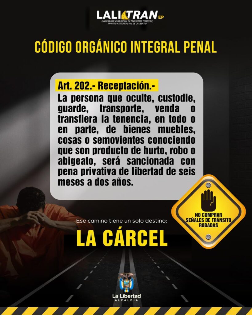 NO ROBAR NI COMPRAR SEÑALES DE TRÁNSITO, PODRÁS IR A LA CÁRCEL.
