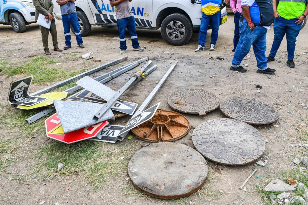 Recuperamos 10 señaleticas verticales y 9 tapas de alcantarillado que fueron hurtados y vendidos en una chatarrera del Sur de Suinli.